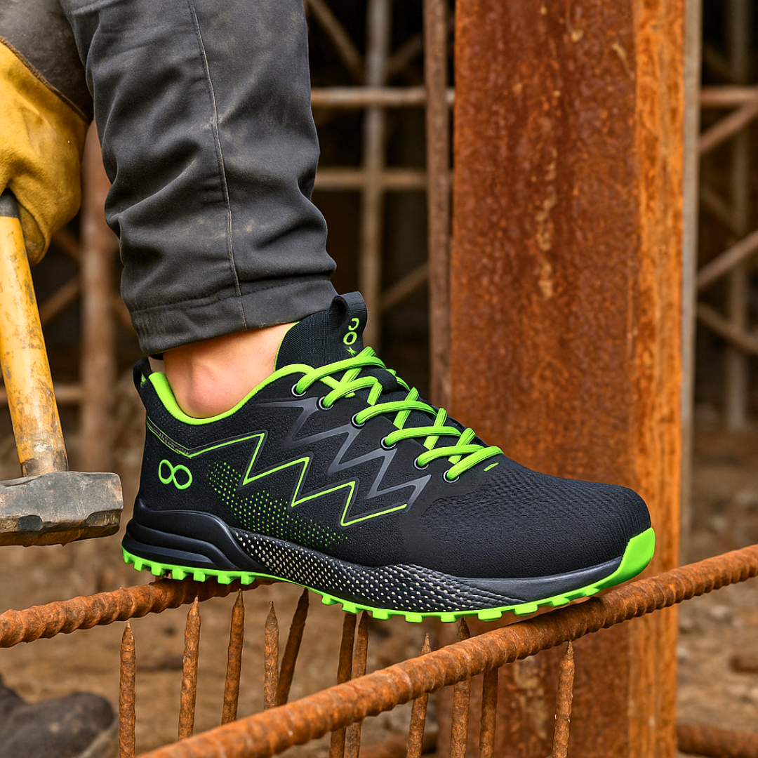 Fodera tecnica traspirante e sottopiede anatomico in EVA lavorano con l’ammortizzazione per ridurre affaticamento e picchi d’impatto su turni lunghi.