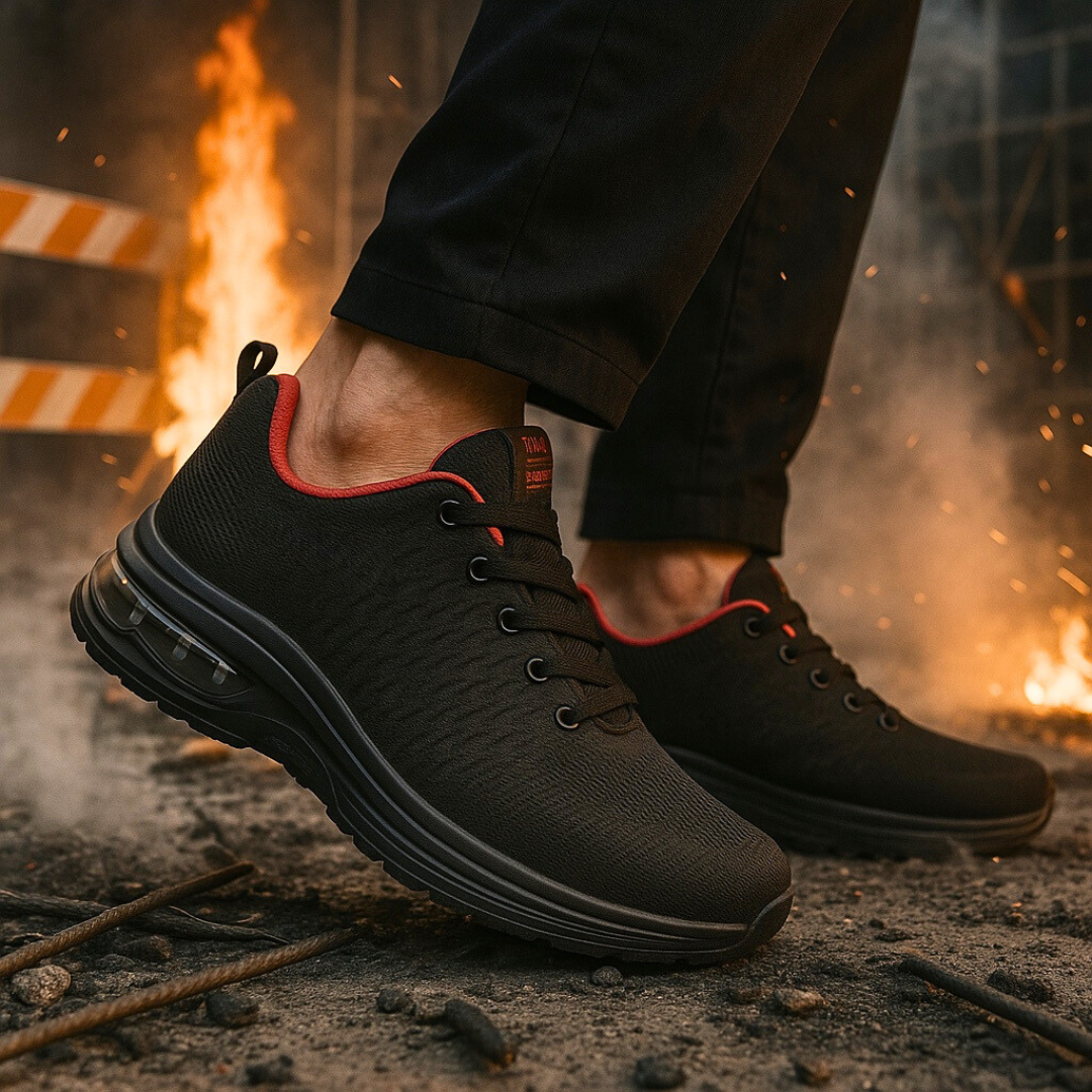 Fodera tecnica traspirante e sottopiede anatomico in EVA lavorano con l’ammortizzazione per ridurre affaticamento e picchi d’impatto su turni lunghi.