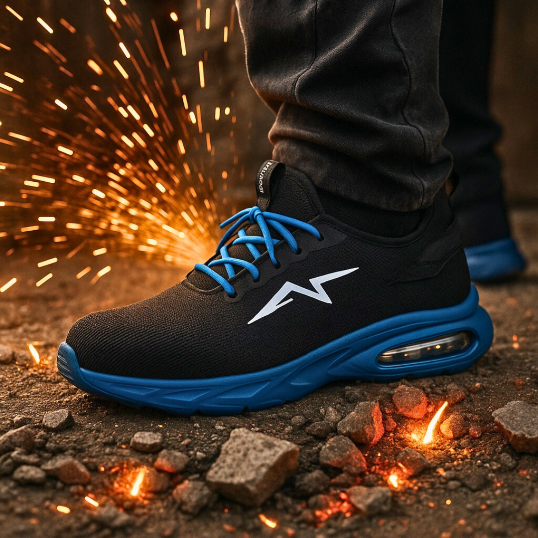Fodera tecnica traspirante e sottopiede anatomico in EVA lavorano con l’ammortizzazione per ridurre affaticamento e picchi d’impatto su turni lunghi.