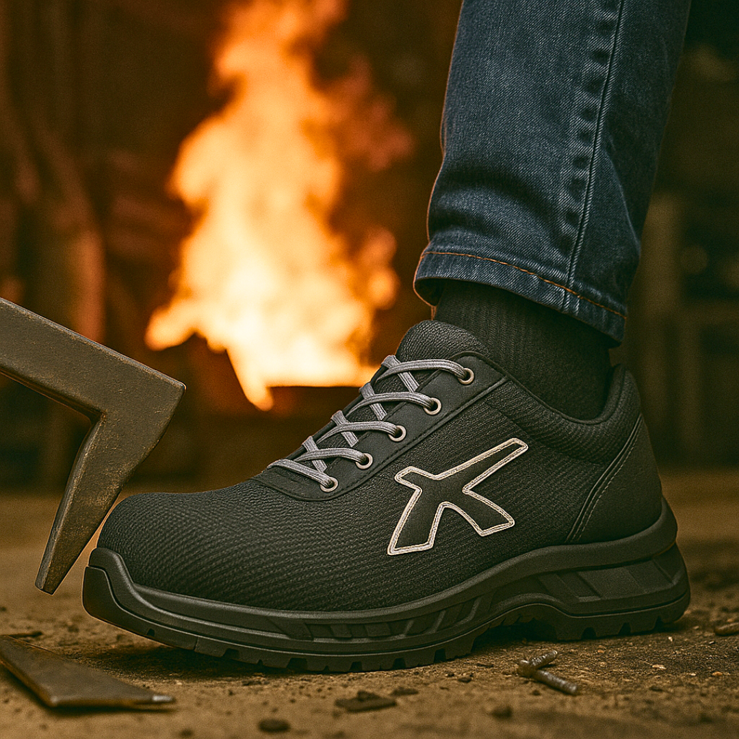 Fodera tecnica traspirante e sottopiede anatomico in EVA lavorano con l’ammortizzazione per ridurre affaticamento e picchi d’impatto su turni lunghi.
